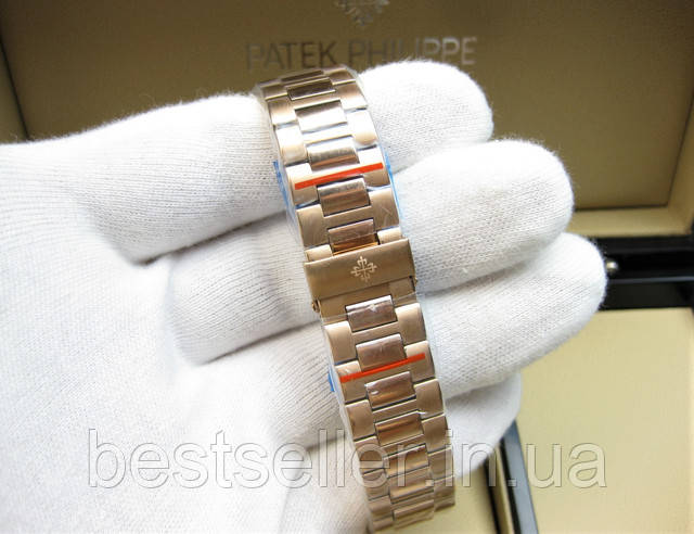 У нашому інтернет-магазині ви зможете купити модель Patek Philippe Nautilus за акційною ціною. Спортивний і елегантний дизайн моделі Nautilus підійде під будь-який стиль одягу, чи то строгий діловий костюм, чи то джинси з футболкою. А поєднання неіржавкої сталі, сапфірового скла та швейцарського механізму ETA, роблять цей годинник практично вічним!
